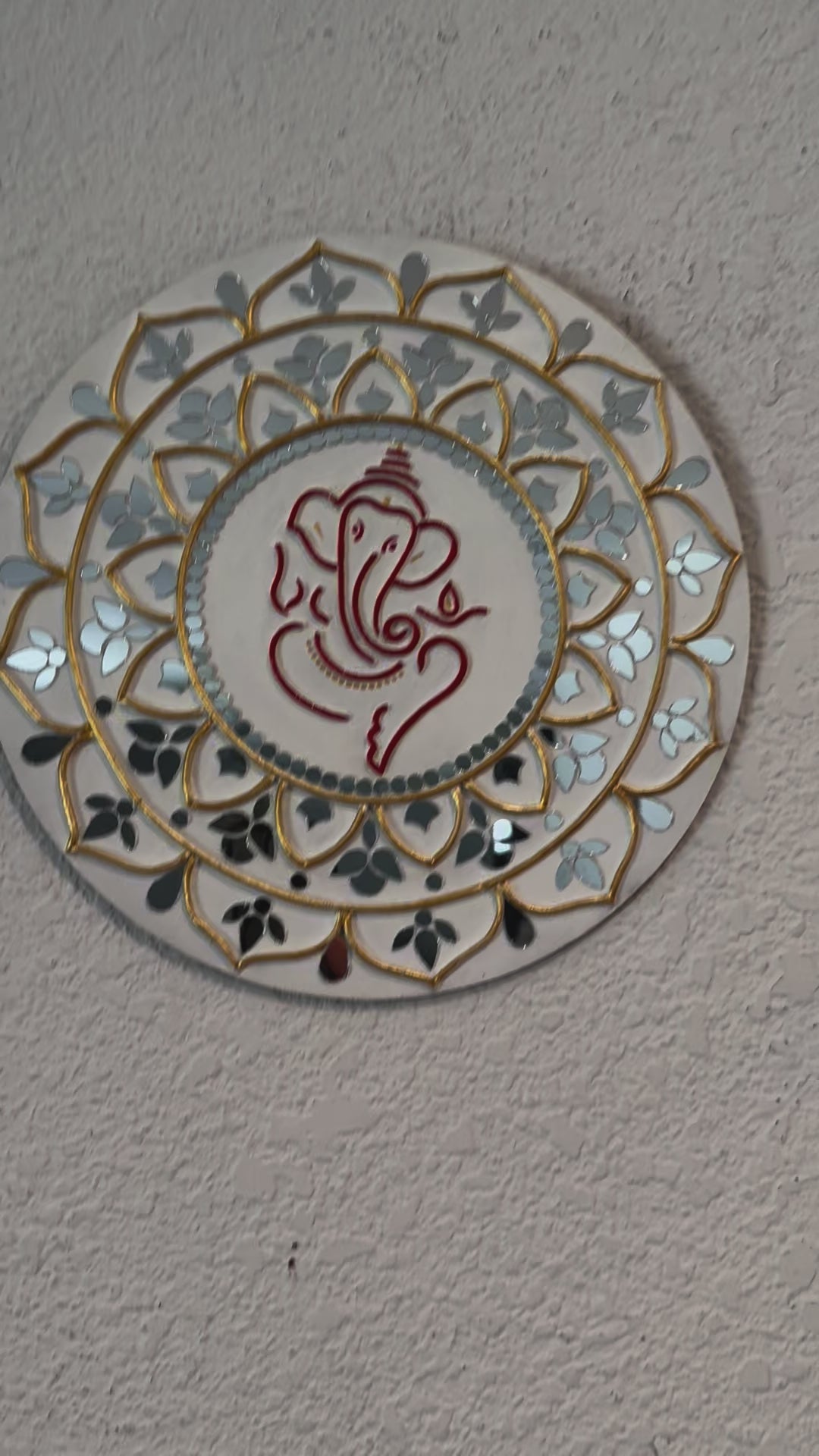 Gorgeous 12 inch Sri Ganesha Lippan wall art with mirrors
