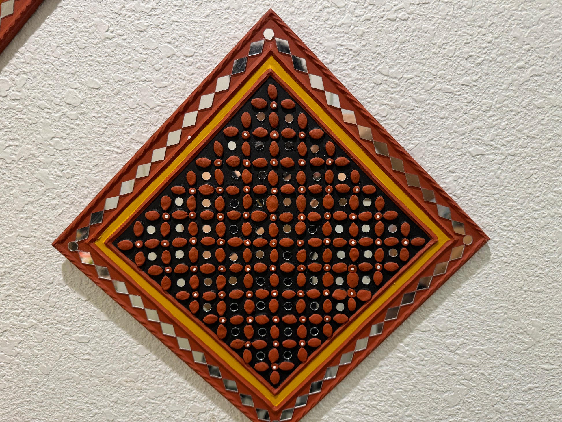 Lippan (Clay) artwork is a traditional Indian art form. This exquisite craft involves the use of natural clay and intricate mirror work to create stunning wall murals and decorative pieces. Each design reflects the rich cultural heritage and vibrant spirit of rural India, characterized by its detailed patterns and radiant embellishments.